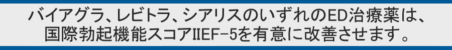 しかし、バイアグラ、レビトラ、シアリスの効果は個人差があります。 ご本人にあった薬剤を選択してください。