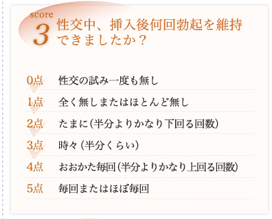 score3 性交中、挿入後何回勃起を維持できましたか?
