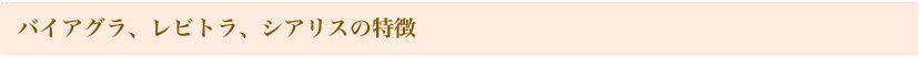 以下に、バイアグラ、レビトラ、シアリスの特徴を示します。参考にしてください。